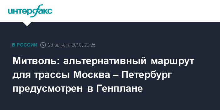 Митволь: альтернативный маршрут для трассы Москва – Петербург предусмотрен в Генплане
