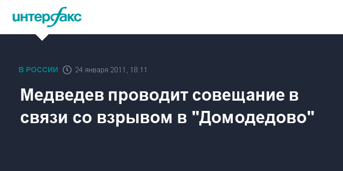 Москва. 24 января. INTERFAX.RU - Президент РФ Дмитрий Медведев проводит экстренное совещание в связи с терактом в московском аэропорту "Домодедово".