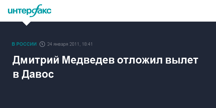 Горки. 24 января. INTERFAX.RU - Президент РФ Дмитрий Медведев отложил намеченный на вторник вылет в Швейцарию для участия в работе Всемирного экономического форума, сообщила пресс-секретарь главы государства Наталья Тимакова.