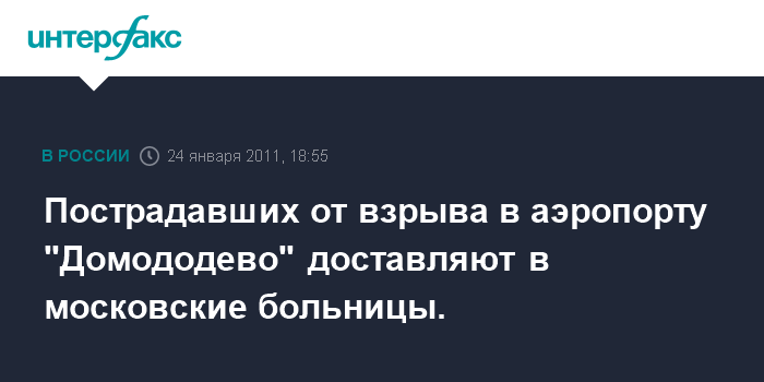 Москва. 24 января. INTERFAX.RU - Пострадавших от взрыва в аэропорту "Домододево" доставляют в московские больницы.