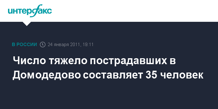 Число тяжело пострадавших в Домодедово составляет 35 человек