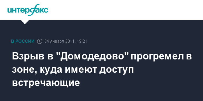 Москва. 24 января. INTERFAX.RU - Взрыв в аэропорту "Домодедово" произошел в зоне международных прилетов, куда имеют доступ граждане, не являющиеся пассажирами, сообщила "Интерфаксу" официальный представитель аэропорта "Домодедово" Елена Галанова.