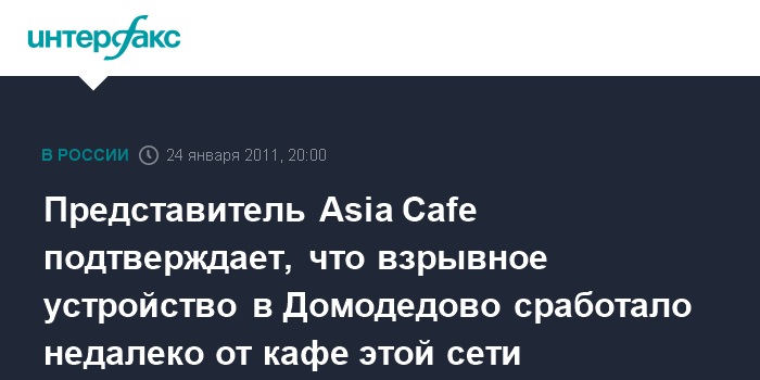 Представитель Asia Cafe подтверждает, что взрывное устройство в Домодедово сработало недалеко от кафе этой сети