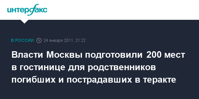Власти Москвы подготовили 200 мест в гостинице для родственников погибших и пострадавших в теракте