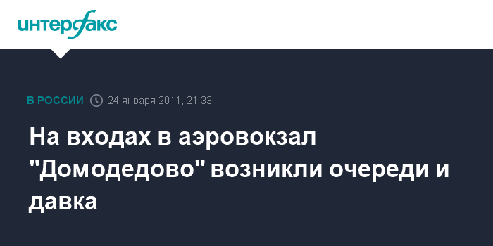Москва. 24 января. INTERFAX.RU - На всех входах в терминал аэропорта "Домодедово" образуются длинные очереди и давка, сообщил корреспондент "Интерфакса" с места событий.
