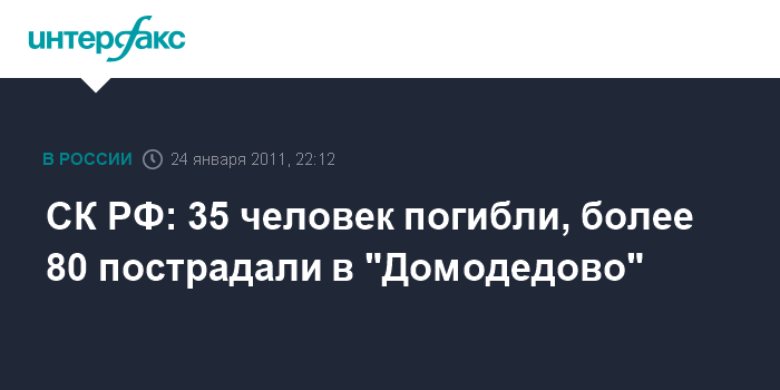 СК РФ: 35 человек погибли, более 80 пострадали в "Домодедово"