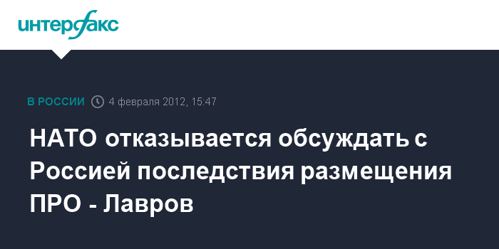 "Военная инфраструктура (НАТО - "ИФ") приближается к нам достаточно быстро, несмотря на обязательство после крушения Советского Союза, что инфраструктура НАТО не будет размещаться на территориях новых членов НАТО. Поэтому мой вопрос касательно элементов размещения ПРО, подпадают ли он под рамки этого обязательства или нет? Но все наши попытки начать в НАТО обсуждение вопроса, насколько велики должны быть эти боевые силы, чтобы стать существенными, не добиваются успеха. НАТО не хочет это обсуждать", - продолжил российский министр.