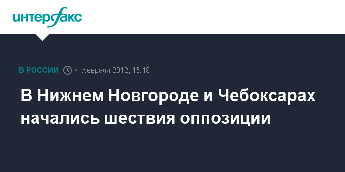 Нижний Новгород/Чебоксары. 4 февраля. INTERFAX.RU - В Нижнем Новгороде около 300 человек готовятся провести несогласованное с властями шествие от кинотеатра "Октябрь" по главной улице города к нижегородскому кремлю, где пройдет митинг за честные выборы. Как заявил журналистам один из организаторов акции, депутат Госдумы РФ от КПРФ Николай Рябов, собравшиеся колонной пройдут по Большой Покровской на площадь Минина, где, по его оценкам, "соберется около 4,5 тыс человек".