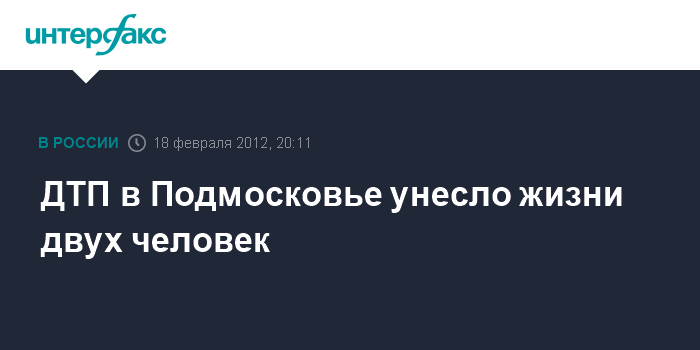 Москва. 18 февраля. INTERFAX.RU - Двое мужчин погибли в ДТП в Подмосковье, сообщил "Интерфаксу" источник в правоохранительных органах.