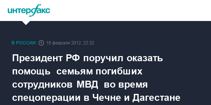Президент РФ поручил оказать помощь семьям погибших сотрудников МВД во время спецоперации в Чечне и Дагестане