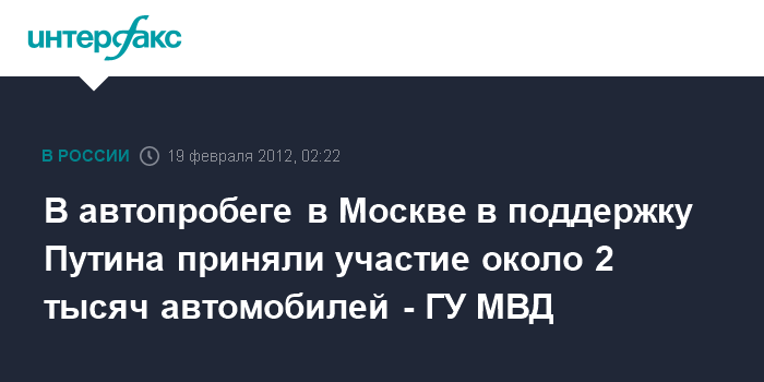В автопробеге в Москве в поддержку Путина приняли участие около 2 тысяч автомобилей - ГУ МВД