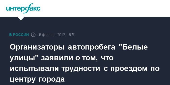 Москва. 19 февраля. INTERFAX.RU - Участники оппозиционного автопробега "Белые улицы" в Москве испытывают трудности с проездом по центру города из-за организованных ГИБДД ограничений и автомобилистов-провокаторов, утверждают в обществе "Синих ведерок". "Практически все повороты с Садового и Бульварного колец в сторону центра перекрыты, либо светофор включается на несколько секунд", - сообщил "Интерфаксу" координатор общества "Синих ведерок" (ОСВ) Петр Шкуматов.