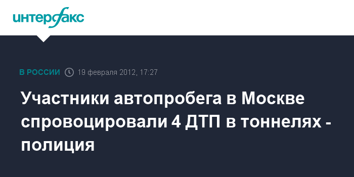 Москва. 19 февраля. INTERFAX.RU - Несколько ДТП, спровоцированных автомобилями, участвующими в оппозиционном автопробеге "Белые улицы" в Москве, произошли на дорогах, заявляют ГУ МВД РФ по Москве.