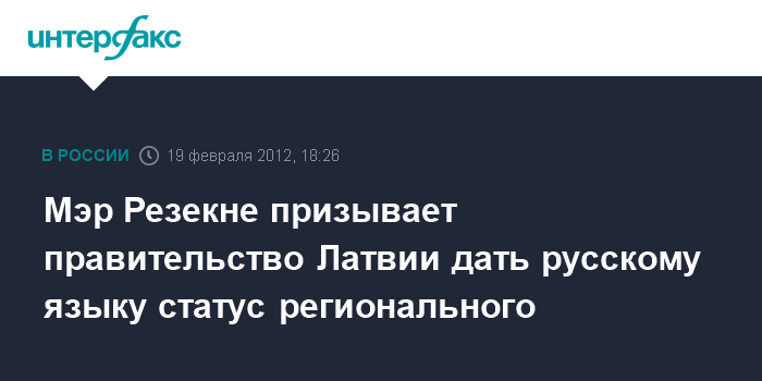 Рига. 19 февраля. INTERFAX.RU/BNS - Поскольку большая часть граждан в городах и округах Латгалии проголосовала за русский язык как второй государственный, то следует подумать о присвоении ему в Латвии статуса регионального, считает мэр Резекне Александр Барташевич.