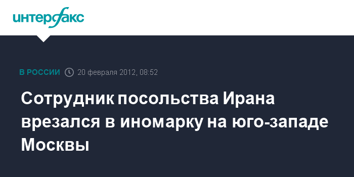 Москва. 20 февраля. INTERFAX.RU - Иранский дипломат устроил дорожно-транспортную аварию на юго-западе Москвы, сообщил "Интерфаксу" в понедельник источник в правоохранительных органах.