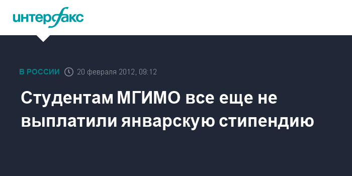 Москва. 20 февраля. INTERFAX.RU - Студентам МГИМО до сих пор не выплатили январских стипендий, утверждают в Российском студенческом союзе (РСС).