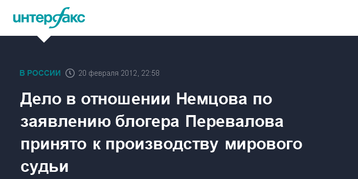 Дело в отношении Немцова по заявлению блогера Перевалова принято к производству мирового судьи