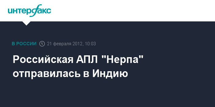 Дели. 21 февраля. INTERFAX.RU - Атомная подводная лодка (АПЛ) "Нерпа", переданная в лизинг Военно-морским силам Индии, во вторник покинула Приморье и отправилась в Индию.