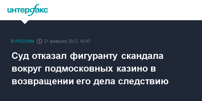 Суд отказал фигуранту скандала вокруг подмосковных казино в возвращении его дела следствию