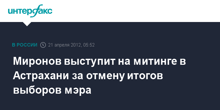 Миронов выступит на митинге в Астрахани за отмену итогов выборов мэра