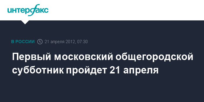 Москва. 21 апреля. ИНТЕРФАКС-МОСКВА - Первый из двух традиционных общегородских субботников пройдет в Москве 21 апреля.