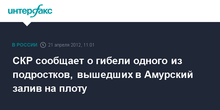 СКР сообщает о гибели одного из подростков, вышедших в Амурский залив на плоту