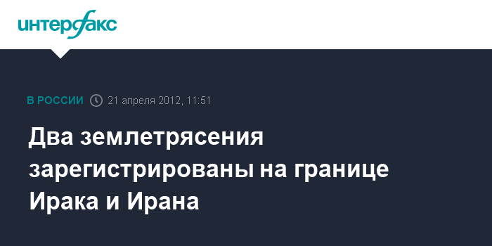 Вашингтон. 21 апреля. INTERFAX.RU - Два сильных землетрясения произошли в субботу на ирано-иракской границе, сообщила Геологическая служба США. По данным американских сейсмологов, магнитуда подземных толчков составила около 5,0.