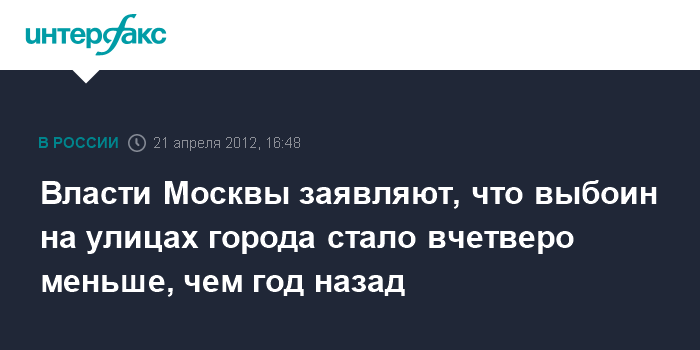 Власти Москвы заявляют, что выбоин на улицах города стало вчетверо меньше, чем год назад