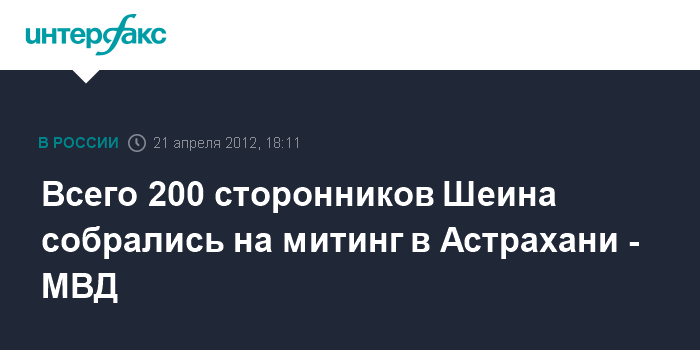 Астрахань. 21 апреля. INTERFAX.RU - Митинг в поддержку бывшего кандидата в мэры Астрахани эсера Олега Шеина собрал в субботу 200 участников, сообщили агентству "Интерфакс-Юг" в пресс-службе управления МВД по Астраханской области. "В митинге, проходившем в формате встречи с депутатом, приняли участие 200 человек", - сообщил собеседник агентства. Акция проходила в сквере имени Кирова в Астрахани.