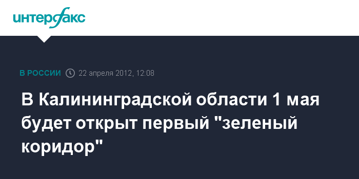 Калининград. 22 апреля. INTERFAX.RU - Калининградское пограничное управление ФСБ России совместно с таможенными органами области уже 1 мая откроет на российско-польском участке границы так называемый "зеленый коридор", сообщил "Интерфаксу" заместитель руководителя регионального управления Росграницы Виктор Кудрявцев. "Коридор начнет работать в экспериментальном режиме. К его открытию готовы как российская сторона, так и польские контрольные службы. Пока что он будет единственным на российско-польской границе", - заявил он.