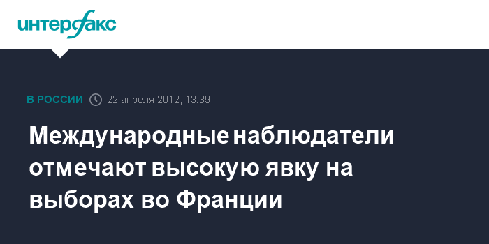 Москва. 22 апреля. INTERFAX.RU - Представители Международной организации по наблюдению за выборами CIS-EMO побывали на нескольких участках в парижском пригороде Сант-Уэн, где отметили высокую явку, говорится в сообщении организации, поступившем в агентство "Интерфакс". "На одном из участков можно было видеть небольшие очереди за конвертами для голосования", - отмечается в сообщении.