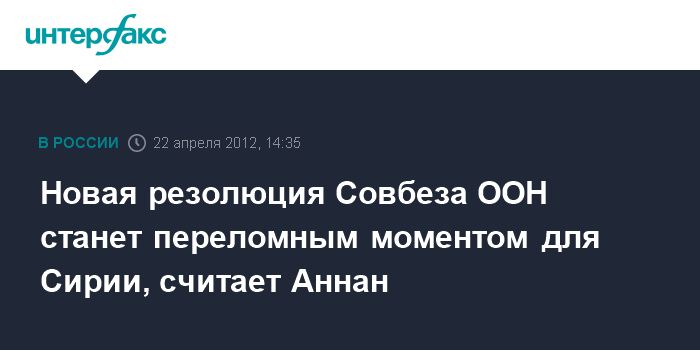 Новая резолюция Совбеза ООН станет переломным моментом для Сирии, считает Аннан