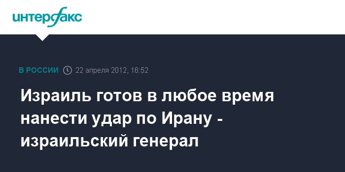 Израиль готов в любое время нанести удар по Ирану - израильский генерал