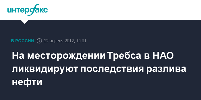 Наряьн-Мар. 22 апреля. INTERFAX.RU - На месторождении им. Требса (Ненецкий автономный округ, НАО) в пятницу вечером произошел разлив нефти, в воскресенье открытый фонтан заглушили, сообщили "Интерфаксу" в региональном МЧС. "При проведении работ на территории месторождения имени Р.Требса в районе рабочего поселка Варандей в пятницу в 17:20 мск произошел выброс водонефтегазовой эмульсии. Для устранения аварии было привлечено 68 единиц техники и 120 человек. Около 6:35 мск воскресенья открытый фонтан удалось заглушить", - сказал представитель МЧС.