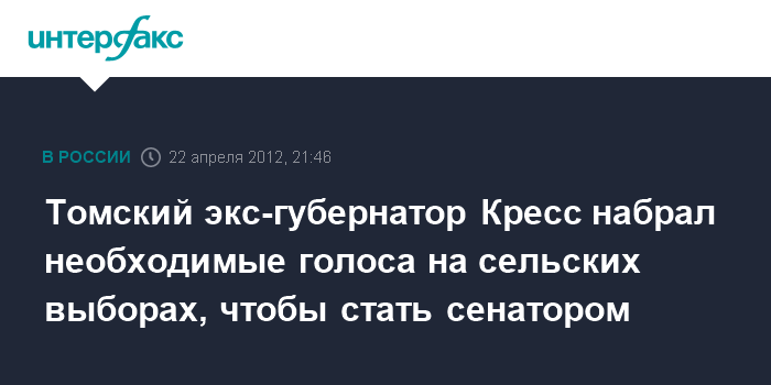 Томский экс-губернатор Кресс набрал необходимые голоса на сельских выборах, чтобы стать сенатором