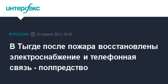 В Тыгде после пожара восстановлены электроснабжение и телефонная связь - полпредство