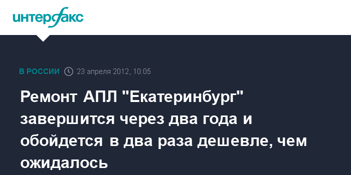 Ремонт АПЛ "Екатеринбург" завершится через два года и обойдется в два раза дешевле, чем ожидалось