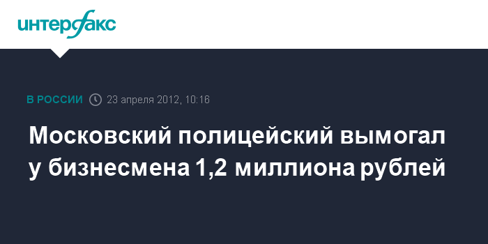 Московский полицейский вымогал у бизнесмена 1,2 миллиона рублей
