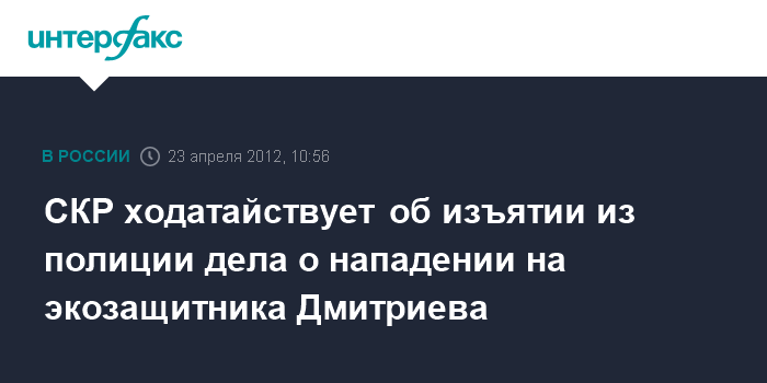СКР ходатайствует об изъятии из полиции дела о нападении на экозащитника Дмитриева