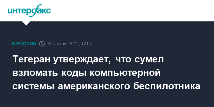 Тегеран. 23 апреля. INTERFAX.RU - Иранские ученые взломали коды компьютерной системы захваченного американского беспилотника и получили данные, необходимые для создания его копии, объявили в местном военном командовании.