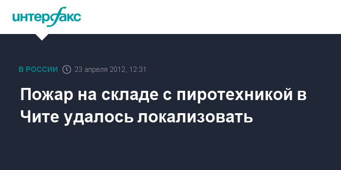 Чита. 23 апреля. INTERFAX.RU - В Чите локализован пожар на складе с пиротехникой, его площадь составила 1,5 тыс. квадратных метров, сообщили агентству "Интерфакс-Сибирь" в пресс-службе ГУ МЧС.