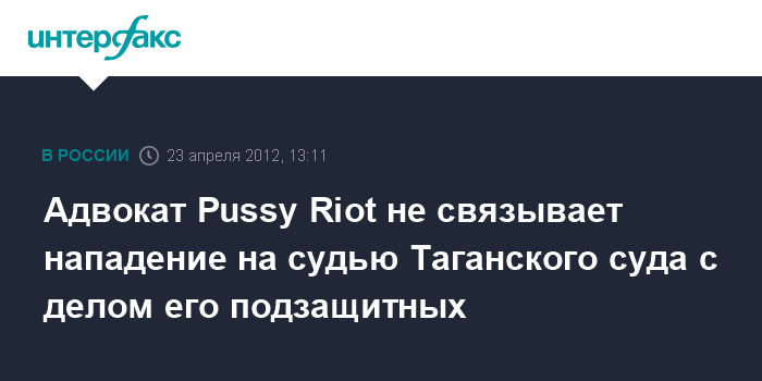 Москва. 23 апреля. INTERFAX.RU - Адвокату участниц панк-группы Pussy Riot удивлен сообщениями о нападении на судью Таганского суда, которая рассматривает дело в отношении его подзащитных.