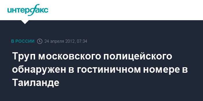 Труп московского полицейского обнаружен в гостиничном номере в Таиланде
