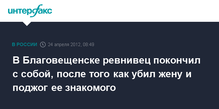 В Благовещенске ревнивец покончил с собой, после того как убил жену и поджог ее знакомого