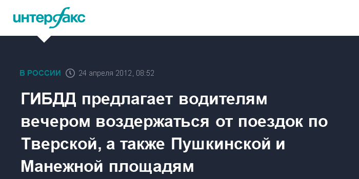 ГИБДД предлагает водителям вечером воздержаться от поездок по Тверской, а также Пушкинской и Манежной площадям