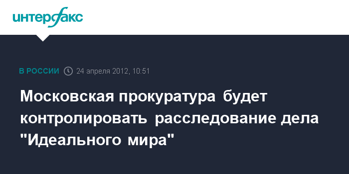 Московская прокуратура будет контролировать расследование дела "Идеального мира"