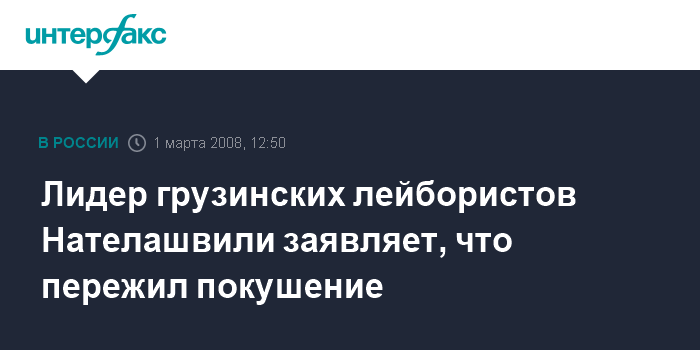 Тбилиси. 1 марта. ИНТЕРФАКС - Лидер Лейбористской партии Грузии Шалва Нателашвили, вернувшийся в субботу в Тбилиси из Вены, где ему была сделана операция на сердце, заявил журналистам в аэропорту, что пострадал от покушения на его жизнь.