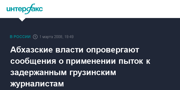 Сухуми. 1 марта. ИНТЕРФАКС - Центр общественных связей Службы госбезопасности (СГБ) Абхазии назвал недостоверной информацию грузинских СМИ о том, что задержанных сотрудников грузинской телекомпании пытают и избивают в изоляторе в Сухуми.