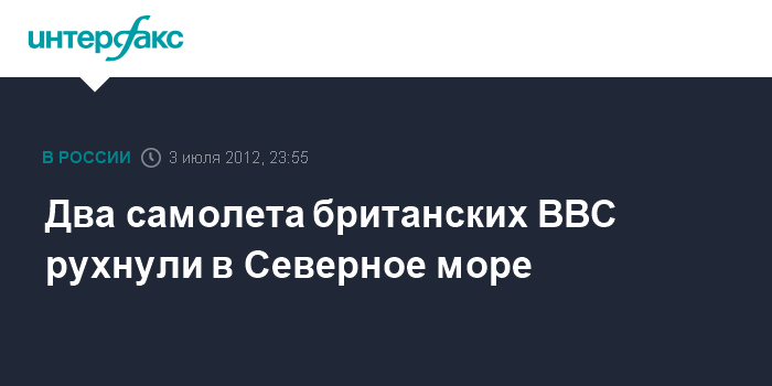 Лондон. 3 июля. INTERFAX.RU - Два истребителя-бомбардировщика британских ВВС "Торнадо" по невыясненным причинам упали в Северное море, сообщает шотландское телевидение.
