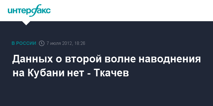 Данных о второй волне наводнения на Кубани нет - Ткачев